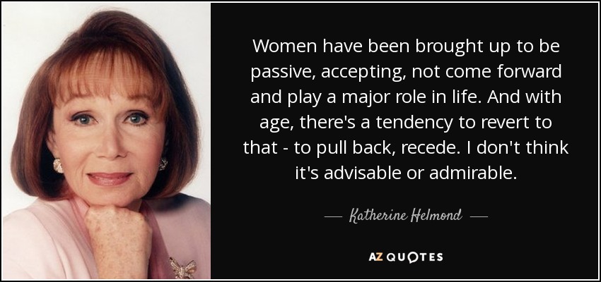 Women have been brought up to be passive, accepting, not come forward and play a major role in life. And with age, there's a tendency to revert to that - to pull back, recede. I don't think it's advisable or admirable.
