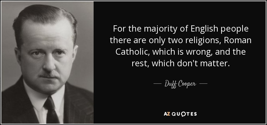 For the majority of English people there are only two religions, Roman Catholic, which is wrong, and the rest, which don't matter.