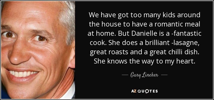 We have got too many kids around the house to have a romantic meal at home. But Danielle is a fantastic cook. She does a brilliant lasagne, great roasts and a great chilli dish. She knows the way to my heart.