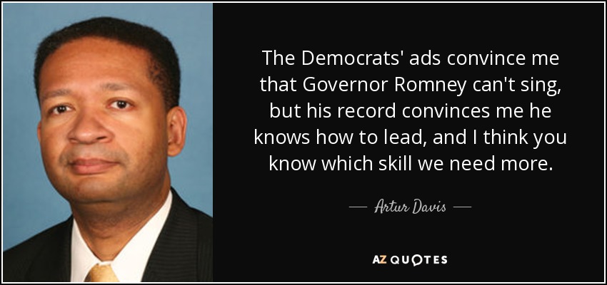 The Democrats' ads convince me that Governor Romney can't sing, but his record convinces me he knows how to lead, and I think you know which skill we need more.