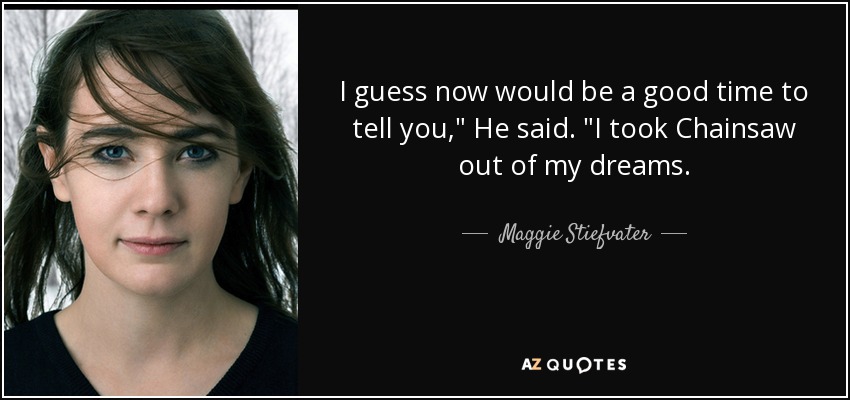 I guess now would be a good time to tell you," He said. "I took Chainsaw out of my dreams.