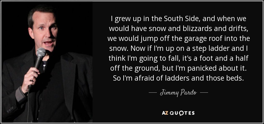 I grew up in the South Side, and when we would have snow and blizzards and drifts, we would jump off the garage roof into the snow. Now if I'm up on a step ladder and I think I'm going to fall, it's a foot and a half off the ground, but I'm panicked about it. So I'm afraid of ladders and those beds.
