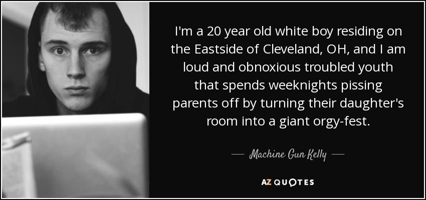 I'm a 20 year old white boy residing on the Eastside of Cleveland, OH, and I am loud and obnoxious troubled youth that spends weeknights pissing parents off by turning their daughter's room into a giant orgy-fest.