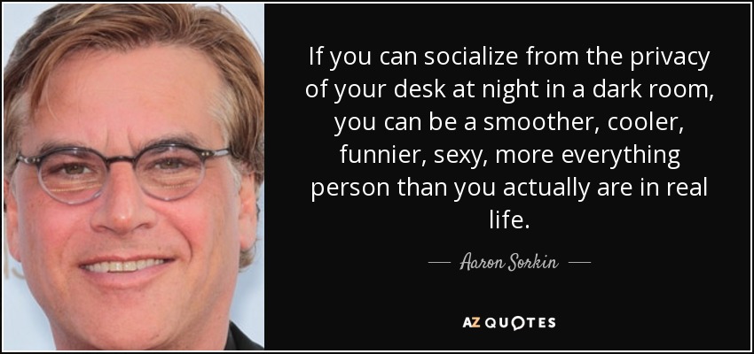 If you can socialize from the privacy of your desk at night in a dark room, you can be a smoother, cooler, funnier, sexy, more everything person than you actually are in real life.