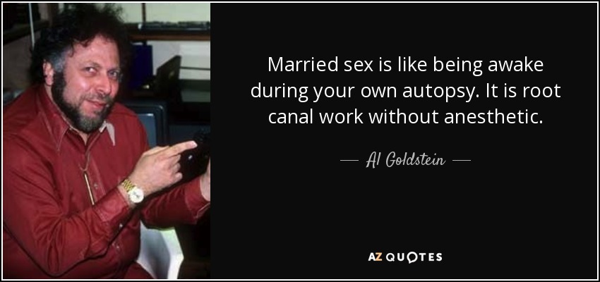 Married sex is like being awake during your own autopsy. It is root canal work without anesthetic.