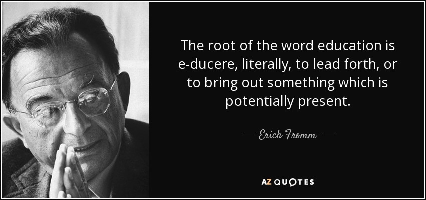 The root of the word education is e-ducere, literally, to lead forth, or to bring out something which is potentially present.