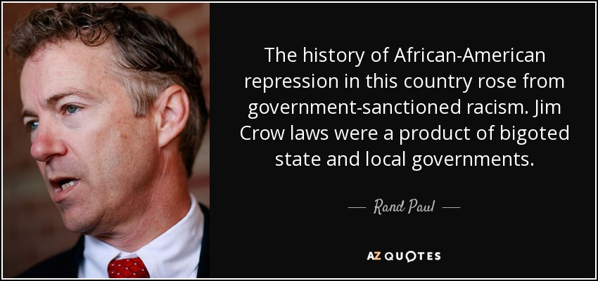 The history of African-American repression in this country rose from government-sanctioned racism. Jim Crow laws were a product of bigoted state and local governments.