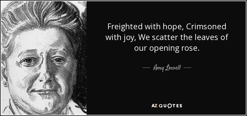 Freighted with hope, Crimsoned with joy, We scatter the leaves of our opening rose.