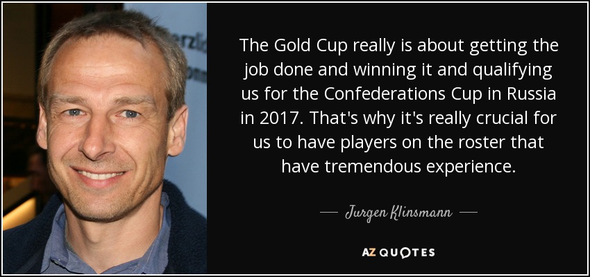 The Gold Cup really is about getting the job done and winning it and qualifying us for the Confederations Cup in Russia in 2017. That's why it's really crucial for us to have players on the roster that have tremendous experience.