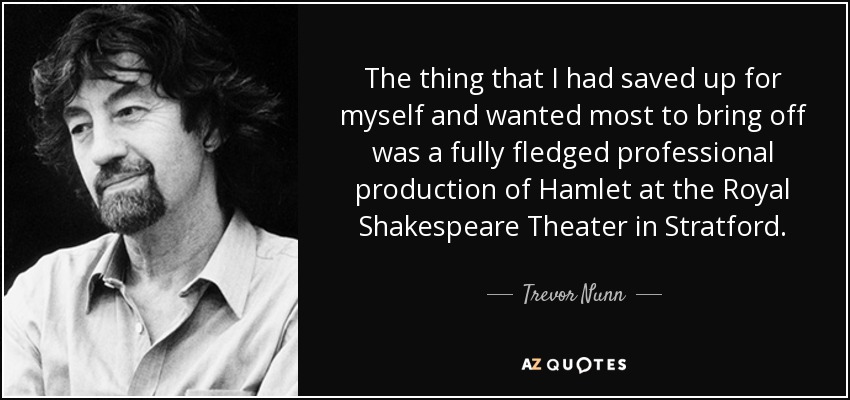 The thing that I had saved up for myself and wanted most to bring off was a fully fledged professional production of Hamlet at the Royal Shakespeare Theater in Stratford.