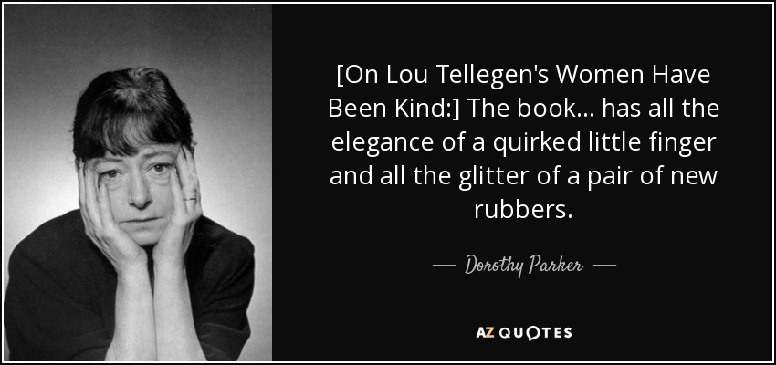 [On Lou Tellegen's Women Have Been Kind:] The book ... has all the elegance of a quirked little finger and all the glitter of a pair of new rubbers.