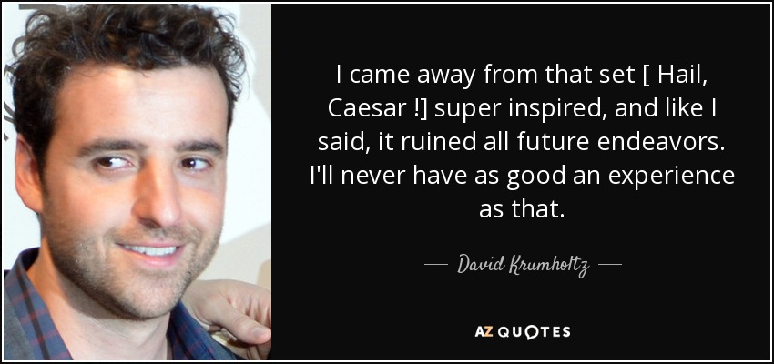 I came away from that set [ Hail, Caesar !] super inspired, and like I said, it ruined all future endeavors. I'll never have as good an experience as that.