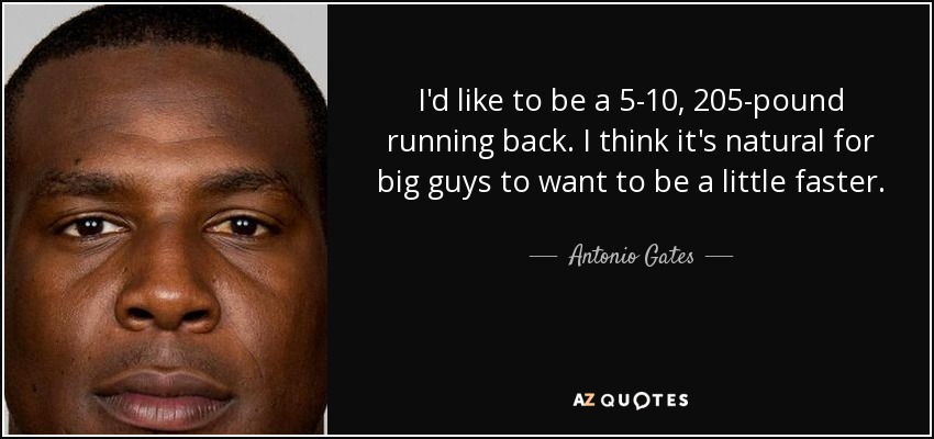 I'd like to be a 5-10, 205-pound running back. I think it's natural for big guys to want to be a little faster.