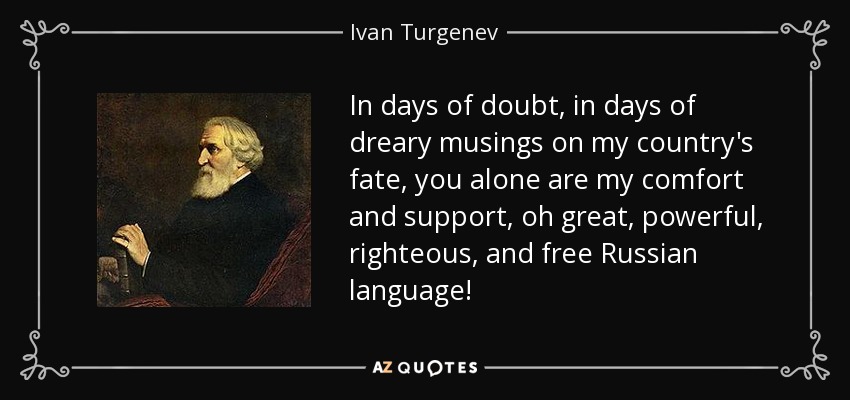 In days of doubt, in days of dreary musings on my country's fate, you alone are my comfort and support, oh great, powerful, righteous, and free Russian language!