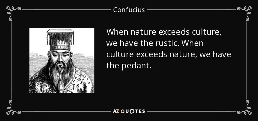 When nature exceeds culture, we have the rustic. When culture exceeds nature, we have the pedant.