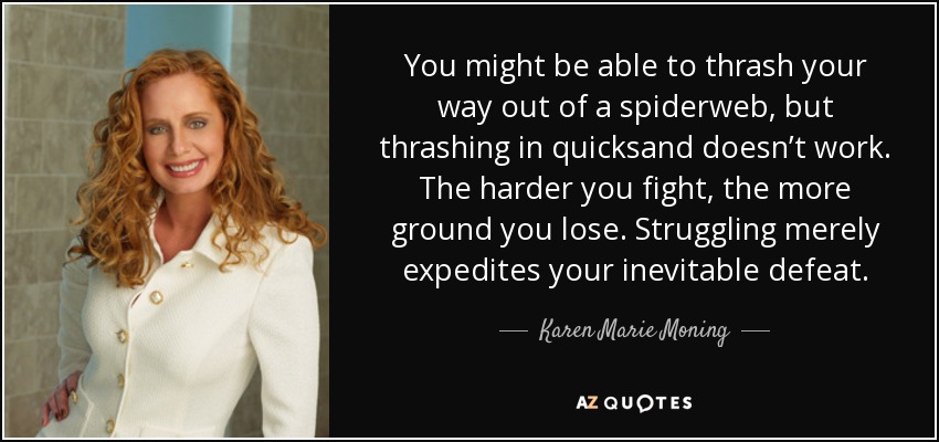 You might be able to thrash your way out of a spiderweb, but thrashing in quicksand doesn’t work. The harder you fight, the more ground you lose. Struggling merely expedites your inevitable defeat.