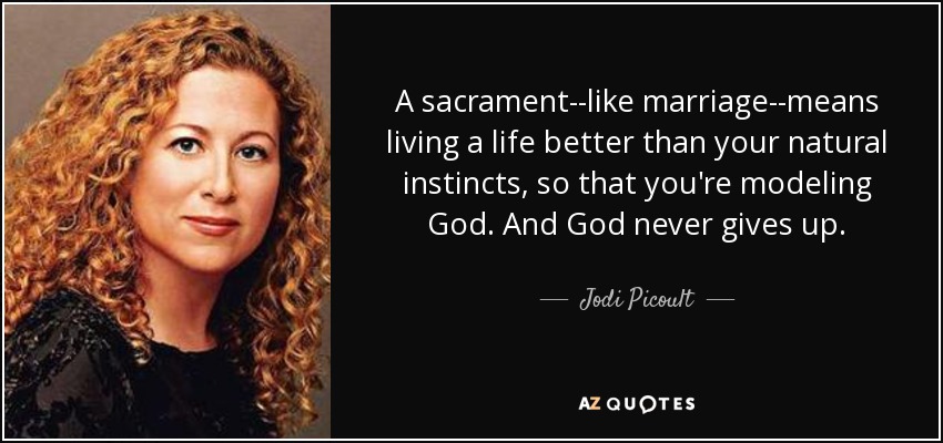 A sacrament--like marriage--means living a life better than your natural instincts, so that you're modeling God. And God never gives up.