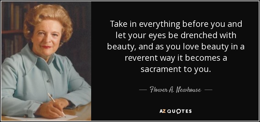 Take in everything before you and let your eyes be drenched with beauty, and as you love beauty in a reverent way it becomes a sacrament to you.