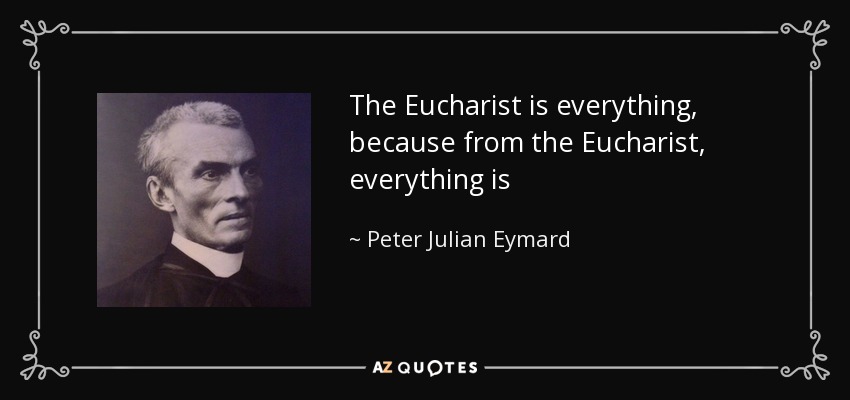 Without [these] lights and [this] little throne our Lord cannot come out of His tabernacle. We give them to Him, and we say to Him: 'Thou are on a beautiful throne. It is we that have erected it for Thee. It is we that have opened the door of Thy prison and rent the cloud that hid Thee, O Sun of Love. Dart Thy rays now on every heart'