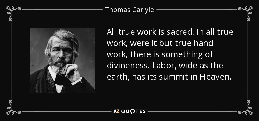 All true work is sacred. In all true work, were it but true hand work, there is something of divineness. Labor, wide as the earth, has its summit in Heaven.