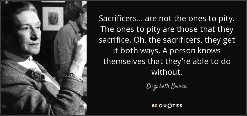 Sacrificers ... are not the ones to pity. The ones to pity are those that they sacrifice. Oh, the sacrificers, they get it both ways. A person knows themselves that they're able to do without.