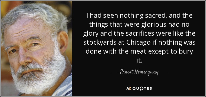 I had seen nothing sacred, and the things that were glorious had no glory and the sacrifices were like the stockyards at Chicago if nothing was done with the meat except to bury it.