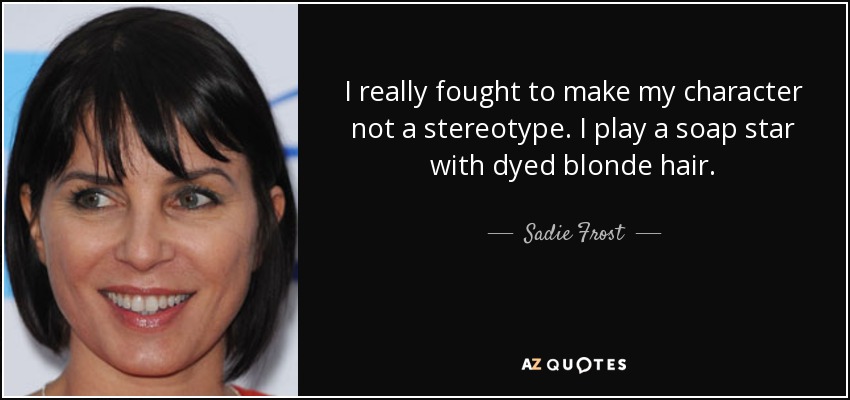 I really fought to make my character not a stereotype. I play a soap star with dyed blonde hair.