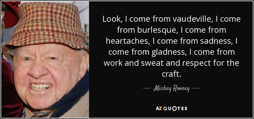 Look, I come from vaudeville, I come from burlesque, I come from heartaches, I come from sadness, I come from gladness, I come from work and sweat and respect for the craft.