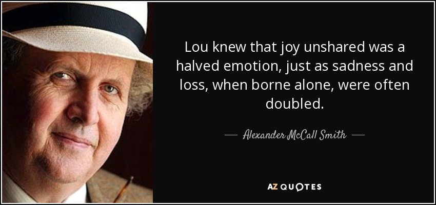 Lou knew that joy unshared was a halved emotion, just as sadness and loss, when borne alone, were often doubled.