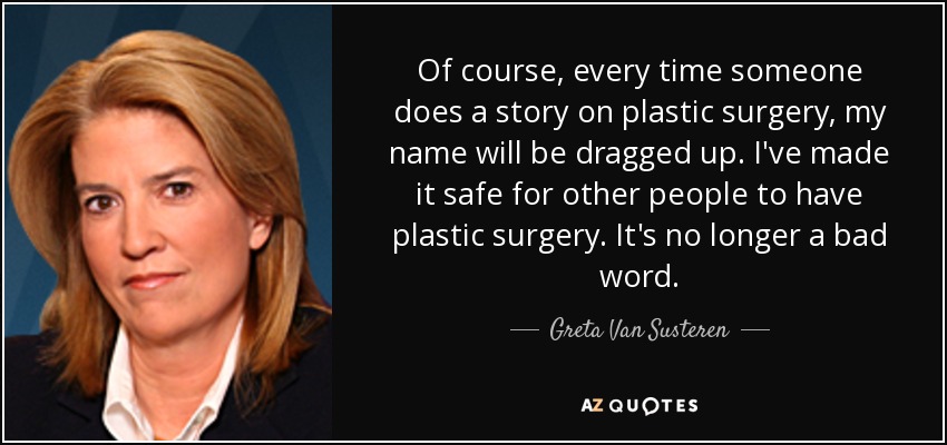 Of course, every time someone does a story on plastic surgery, my name will be dragged up. I've made it safe for other people to have plastic surgery. It's no longer a bad word.