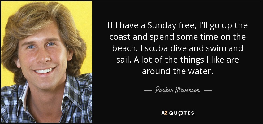 If I have a Sunday free, I'll go up the coast and spend some time on the beach. I scuba dive and swim and sail. A lot of the things I like are around the water.