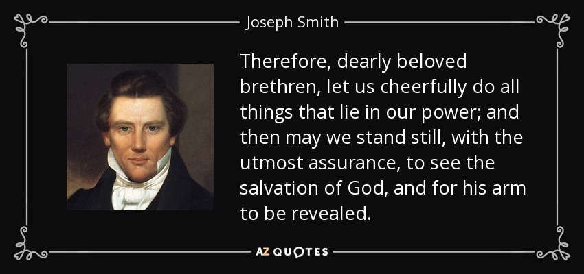 Therefore, dearly beloved brethren, let us cheerfully do all things that lie in our power; and then may we stand still, with the utmost assurance, to see the salvation of God, and for his arm to be revealed.