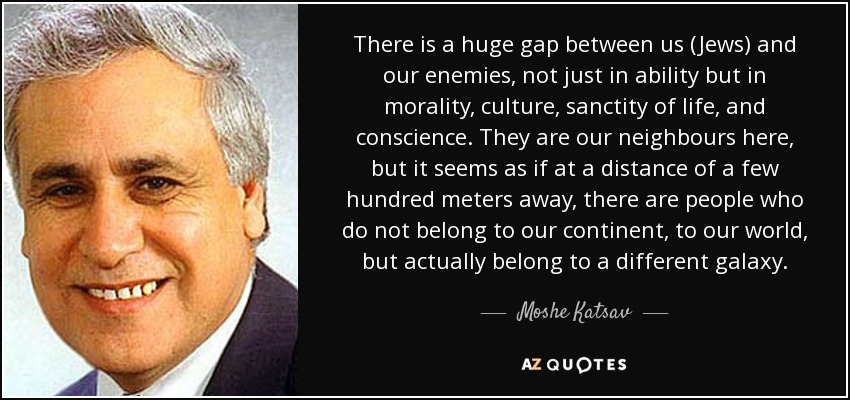 There is a huge gap between us (Jews) and our enemies, not just in ability but in morality, culture, sanctity of life, and conscience. They are our neighbours here, but it seems as if at a distance of a few hundred meters away, there are people who do not belong to our continent, to our world, but actually belong to a different galaxy.