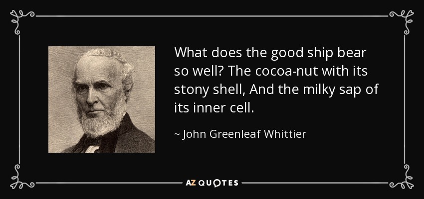 What does the good ship bear so well? The cocoa-nut with its stony shell, And the milky sap of its inner cell.