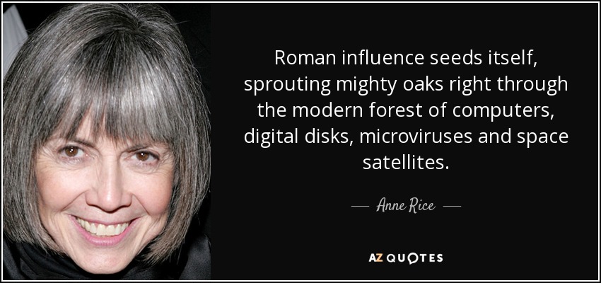 Roman influence seeds itself, sprouting mighty oaks right through the modern forest of computers, digital disks, microviruses and space satellites.