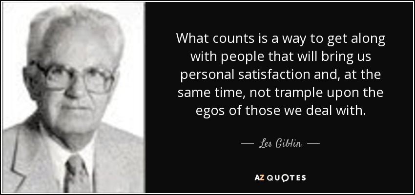 What counts is a way to get along with people that will bring us personal satisfaction and, at the same time, not trample upon the egos of those we deal with.