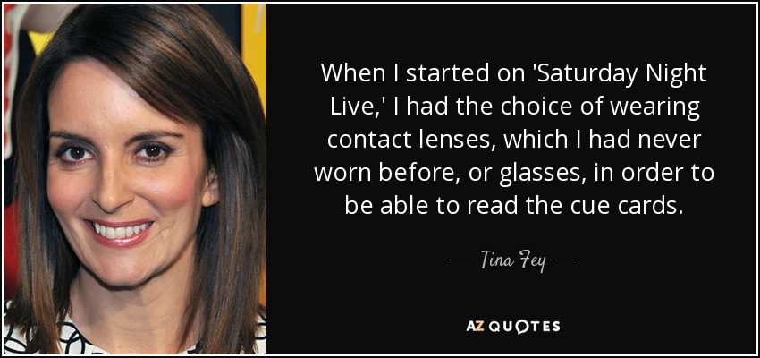 When I started on 'Saturday Night Live,' I had the choice of wearing contact lenses, which I had never worn before, or glasses, in order to be able to read the cue cards.