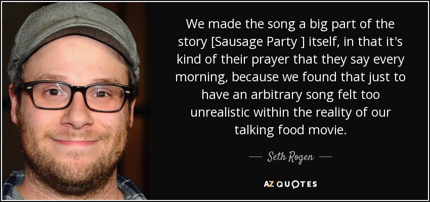 We made the song a big part of the story [Sausage Party ] itself, in that it's kind of their prayer that they say every morning, because we found that just to have an arbitrary song felt too unrealistic within the reality of our talking food movie.