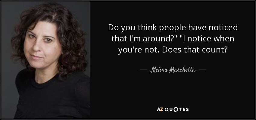 Do you think people have noticed that I'm around?" "I notice when you're not. Does that count?