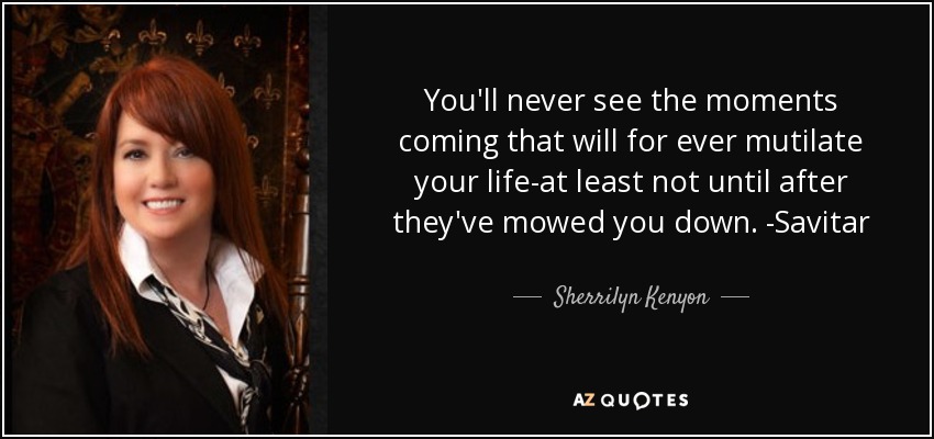 You'll never see the moments coming that will for ever mutilate your life-at least not until after they've mowed you down. -Savitar