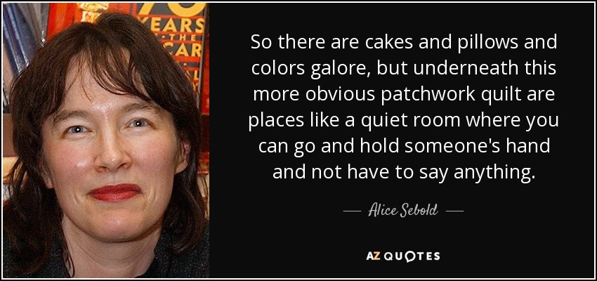 So there are cakes and pillows and colors galore, but underneath this more obvious patchwork quilt are places like a quiet room where you can go and hold someone's hand and not have to say anything.