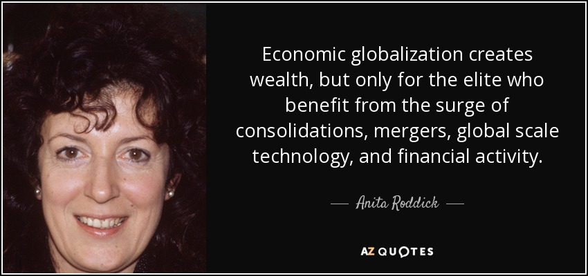 Economic globalization creates wealth, but only for the elite who benefit from the surge of consolidations, mergers, global scale technology, and financial activity.