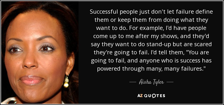 Successful people just don't let failure define them or keep them from doing what they want to do. For example, I'd have people come up to me after my shows, and they'd say they want to do stand-up but are scared they're going to fail. I'd tell them, "You are going to fail, and anyone who is success has powered through many, many failures."
