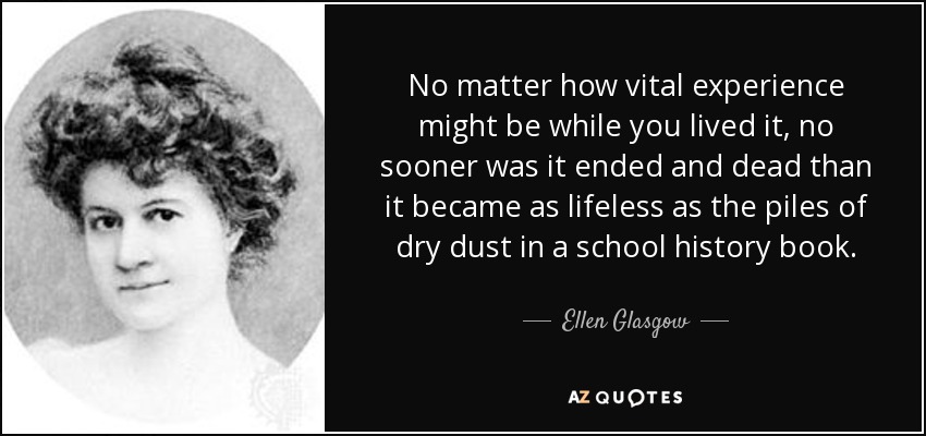 No matter how vital experience might be while you lived it, no sooner was it ended and dead than it became as lifeless as the piles of dry dust in a school history book.