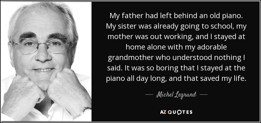 My father had left behind an old piano. My sister was already going to school, my mother was out working, and I stayed at home alone with my adorable grandmother who understood nothing I said. It was so boring that I stayed at the piano all day long, and that saved my life.