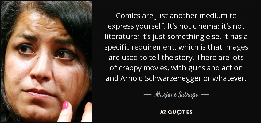 Comics are just another medium to express yourself. It's not cinema; it's not literature; it's just something else. It has a specific requirement, which is that images are used to tell the story. There are lots of crappy movies, with guns and action and Arnold Schwarzenegger or whatever.