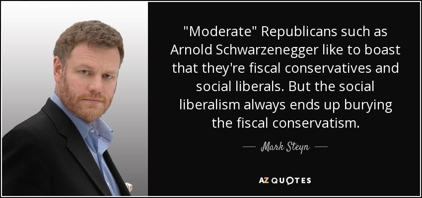 "Moderate" Republicans such as Arnold Schwarzenegger like to boast that they're fiscal conservatives and social liberals. But the social liberalism always ends up burying the fiscal conservatism.