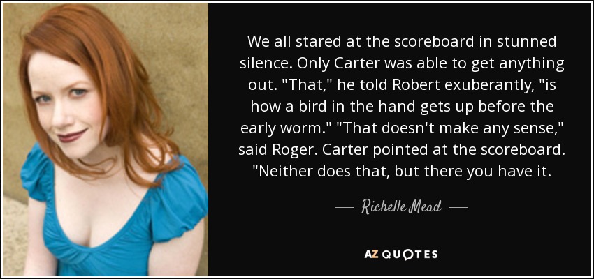 We all stared at the scoreboard in stunned silence. Only Carter was able to get anything out. "That," he told Robert exuberantly, "is how a bird in the hand gets up before the early worm." "That doesn't make any sense," said Roger. Carter pointed at the scoreboard. "Neither does that, but there you have it.