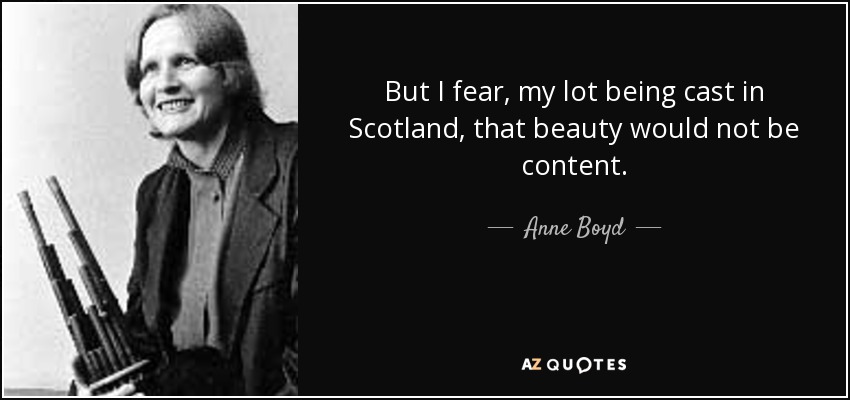 But I fear, my lot being cast in Scotland, that beauty would not be content.