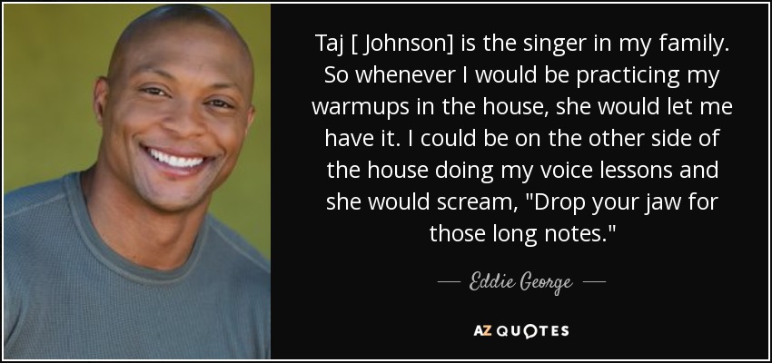 Taj [ Johnson] is the singer in my family. So whenever I would be practicing my warmups in the house, she would let me have it. I could be on the other side of the house doing my voice lessons and she would scream, "Drop your jaw for those long notes."